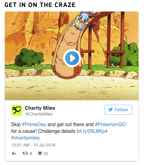 2. 別忘了,Pokémon GO還可以是今年最佳健身類APP 假如你的公司正好深耕于人們的運(yùn)動(dòng)健康數(shù)據(jù)的挖掘或是像微公益一樣為公益捐步數(shù),那么Pokémon GO將為你提供極大的助益。要知道Pokémon GO的玩家都走得超級多,他們得到四處抓精靈,走2KM/5KM 的路,只是為了孵精靈蛋。難怪會有人說這是今年最佳的健身類APP,究竟國外為了抓小精靈天天走10公里當(dāng)即瘦下10公斤的勵(lì)志故事已經(jīng)發(fā)生。而Charity Miles就是一家專門人們的行走、步行或騎自行車的里程轉(zhuǎn)化為捐款的APP,