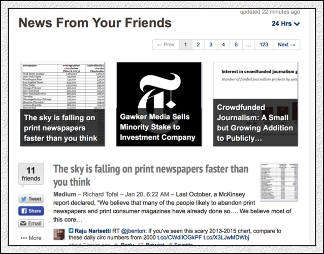 早上醒來,打開手機,一個美國標題黨制作的標題,在杰羅姆個性化定制的信息列表中,排在榜首。標題是這樣寫的:報業(yè)的天塌了,塌的速度比你想象得要快。ㄒ娤聢D)