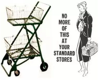 Goldman,猶太移民(沒錯,又是猶太人)。 1930年氟利昂被研制出來,從此之后冷柜開始大范圍傳播。到20世紀30年代末,美國一半以上的家庭用上了冰箱。這樣一來,消費者購物的時候,不止買當天吃的東西,可以一次性買更多的商品。 于是題目來了:在那個時候,自助超市只提供一個金屬絲織成的籃子。假如家庭主婦覺得拎著的東西太重,他們就自動減少購買欲望。 Goldman開始意識到,商人面臨的題目,恰是顧客的痛點,為了銷售更多商品,他必需找到讓顧客更省力的購物方式。 Goldman發(fā)現了一個大痛點。 當時的解決方案是這樣的:當店員看到顧客一個籃子滿了之后,會幫顧客送到收銀臺,然后給他們一個空的籃子。事實證實,這種做法有點太過復雜了。 930年氟利昂被研制出來,從此之后冷柜開始大范圍傳播。到20世紀30年代末,美國一半以上的家庭用上了冰箱。 這樣一來,消費者購物的時候,不止買當天吃的東西,可以一次性買更多的商品。 于是題目來了:在那個時候,自助超市只提供一個金屬絲織成的籃子。 假如家庭主婦覺得拎著的東西太重,他們就自動減少購買欲望。Goldman在1970年回憶說,假如我們能讓主婦拎著兩個籃子購物,還能騰出一只手來挑選商品,我們的生意就能做的更大。 Goldman開始意識到,商人面臨的題目,恰是顧客的痛點,為了銷售更多商品,他必需找到讓顧客更省力的購物方式。 Goldman發(fā)現了一個大痛點。 當時的解決方案是這樣的:當店員看到顧客一個籃子滿了之后,會幫顧客送到收銀臺,然后給他們一個空的籃子。事實證實,這種做法有點太過復雜。