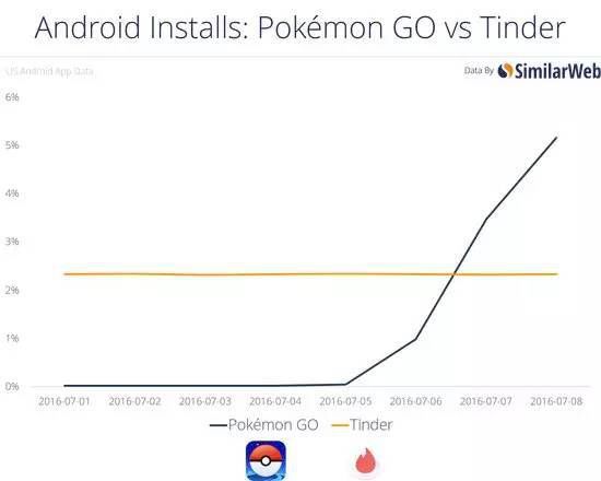 按照差評君的尿性,寫過的東西一般不會再寫。。 但是,特么這款基于 LBS (基于位置服務(wù))的 AR (增強現(xiàn)實技術(shù))游戲,不論在海內(nèi)外、玩的了或者玩不了的地區(qū),都太火了。。。 可以先來看一下關(guān)于 Pokémon GO 的簡樸的數(shù)據(jù)。 所有 Android 平臺,Pokémon GO 與 Tinder(一款約pao App) 的裝機量 玄色是Pokémon GO,黃色是 Tinder