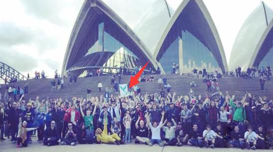 箭頭所指是 Pokémon GO 玩家三陣營的藍色陣營 約 2000 個玩家,在悉尼歌劇院