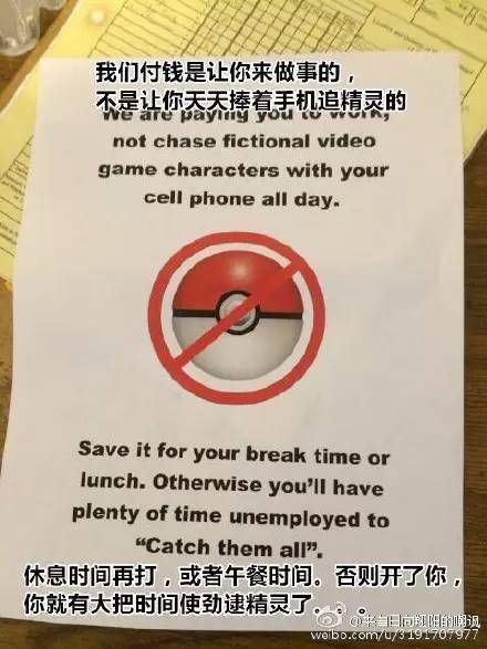 還有由于抓小精靈而影響交通什么的就不提了,甚至有公司還貼出這樣的 “ 告示 ” 。。。