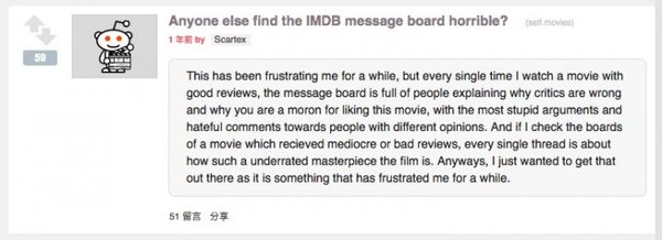 甚至還有用戶發(fā)起了線上請愿,但愿 IMDb 可留存該功能,截止發(fā)稿時間為止,已獲得超過 2500 名用戶支持。 與這些“鐵桿粉絲”相反的是,不少外媒對 IMDb 這一舉措表示支持。TechCrunch 直接將 IMDb 的留言板欄目稱為“互聯網里其中一個最為糟糕的評論區(qū)”,并將其討論質量低下歸咎于網站的治理不當,導致留言板充斥著毫無意義且具有仇恨性的評論。 (圖自 TechCrunch) 很多論壇性網站,如 Reddit,更依靠用戶自行治理。用戶可通過“贊同”或“不贊同”影響言論的排序或“折疊”評論。 (左上角的箭頭讓用戶協助論壇治理言論,圖自 Reddit) 相對而言,IMDb 的留言板討論區(qū)只有用戶舉報這一反饋軌制。根據官網的 Q&A先容,假如用戶發(fā)現有過激言論,首先可將該發(fā)言用戶加入“忽略”列表,隨后就就不會再看到這個用戶的留言。假如覺得這樣不夠,可進一步進行舉報,讓 IMDb 的工作職員判定應該如何處理。一旦涉及到專人進行處理,即可想象到效率的限制。 IMDb 封閉留言板真的只是由于“噴子”嗎? (圖自 IMDb) 不少媒體將 IMDb 公告中“基于數據和流量”這一解釋,解讀為“留言板流量不足以讓 IMDb 留存該功能”,再加上論壇“噴子”泛濫,維護本錢過高,促成了留言板功能即將退出歷史舞臺的直接成因,但真的只是由于這個原因嗎? 固然 Facebook 在全球擁有 18 億用戶,而良多數字媒體皆依靠 Facebook 這類社交媒體為其帶來流量和進行傳播。但自我定位為“數據庫” IMDb 從本質上與注重時效性的社交網絡并不特別“兼容”。 IMDb 也可通過社交媒體發(fā)布影視資訊引起討論,但其發(fā)布的范圍估計只可限于近期發(fā)布的新作品,或是有特定原因才抽出來發(fā)布的舊影視作品,和網站原有不受時效性影響的討論不同。 (圖自 Twitter) 因此,也有預測,IMDb 封閉留言板的真正原因,仍是在于持有者亞馬遜對其作用的定位。1998 年,亞馬遜收購了 IMDb,此后在銷售 DVD 和錄像帶時即可調用這個龐大的數據庫信息。而這個“特權”,為亞馬遜在近年來鼎力鋪展內容發(fā)展提供了不少便利。 如今,當用戶使用特定設備觀看亞馬遜上的片子和電視節(jié)目時,可以通過一個名為“X-Ray”的功能直接查看節(jié)目相關信息,包括演員信息、主要角色先容、片子(電視)原聲音樂、冷知識等信息,而這一切都基于 IMDb 的數據庫。 從這個作用來看,留言板作為一個“非尺度化”信息(即不可歸類)的意義并不大,花費大量人力進行治理也許不值得。 那觀眾的片子的看法該如何表達?固然即將刪除留言板,但 IMDb 仍是有留存“片子評論”欄目,影迷仍是可以發(fā)表自己的觀影體驗。那里固然也有“噴子”,但會根據用戶點擊“支持”進行排序,相對而言情況比留言板好。 IMDb 建議,有需要的用戶,可以在這兩周內對所需內容進行留底,或是向想保持聯系的 IMDb 網友交換聯系方式,并表示在 2017 年會繼承為為用戶尋找更高質量的交流形式。 為躲“噴子”,各大新聞網站紛紛撤銷評論區(qū) (圖自Esquire) IMDb 并不是首個采用一刀切評論區(qū)的大型網站。 早在 2014 年, CNN 已經公布封閉討論區(qū),原由于更多用戶選擇在其社交網絡討論網站文章,站內評論區(qū)重要性大不如前。同年 7 月和 12 月,路透社和 The Week 也接踵封閉評論區(qū),主要也是由于社交網絡發(fā)展和負面言論影響。 在 2015 年和 2016 年間, The Daily Pot、The Verge、衛(wèi)報、NPR、Business Insider都對評論功能進行了不同程度的限制,紛紛將評論轉移到社交網絡上。 但正如上文提及,因為現在社交網絡占據了互聯網中大量的流量來源,越來越多資訊網站不得不加強社交網絡的維護工作以保障流量,而社交網絡強實效性的特性也和資訊類網站相配。因此,不少網站都表示,討論轉移的策略利大于弊。 NPR 員工以為,和網站評論區(qū)比擬,固然 Facebook 作為討論平臺具出缺陷,但網民在上面討論時反而更有禮貌,“最有可能的原因是,那里的用戶必需實名注冊。” 而 The Week 主編也表示,在封閉評論區(qū)后,新聞報道頁面的瀏覽量和網站跳出率都有改善。 |