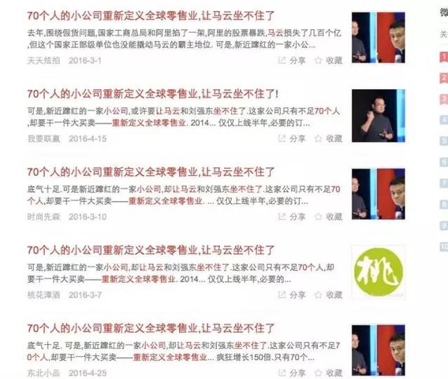 199就能買到 Burberry,200塊就能買到正品耐克……賣個(gè)高仿賣出這種驚天地泣鬼神的逼格,你真的合適嗎。 過去那些做高仿的,一般只敢寫:淘寶爆款,月銷千件…… 但畢勝和必要商城,不愧都是B字輩的,用一個(gè)C2M的高大上概念,把整個(gè)高仿微商都抬高了一個(gè)檔次! 看完必要商城的模式先容,我才明白:原來必要商城的貨源都是來自品牌老板小姨家的二大爺開的工廠,對(duì)方既不怕傷害品牌利益丟訂單,又不怕你訂單少還個(gè)性化需求多單拉出產(chǎn)線要虧本……反正就是:好貨低價(jià)專門只賣給你,又正品來又便宜……劉強(qiáng)東你要好好學(xué)習(xí)一下,京東一直干不外淘寶,原來就是沒有做C2M模式。 看脫稿件,覺得整個(gè)靈魂都得到了升華的倪叔,深深的覺得自己配不上這么牛逼的客戶,于是我問公關(guān)哥哥:您是否找錯(cuò)人啦?這像這種玄幻小說,不是應(yīng)該投放出發(fā)點(diǎn)中文網(wǎng)嗎?來找我們這些寫非虛構(gòu)的真的好嗎? 公關(guān)哥哥沒想到我會(huì)拒絕,愣了愣就罵出一句:哼!不識(shí)提拔,多少大號(hào)都投放了我們的文章,你一個(gè)小號(hào)來挑什么刺? 大號(hào)?。!我嚇了一跳,豈非是作為小號(hào)的我太low啦,已經(jīng)跟不上時(shí)代的步伐了嘛?我急忙打開了微信搜索,看到如下情況:
