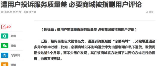 但你的必要商城,并沒有像你稿子中說的那么好! 不是宣稱有百萬用戶嗎?官微連10萬粉絲都沒有 百度上連個(gè)大點(diǎn)的logo都找不到 這算哪門子的影響力平臺(tái)?
