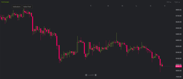 Bitstamp數(shù)據(jù)顯現(xiàn),比特幣最近24小時跌落逾300美元,跌幅大約3%,一度跌破8000美元報7980美元,創(chuàng)4月18日以來新低。