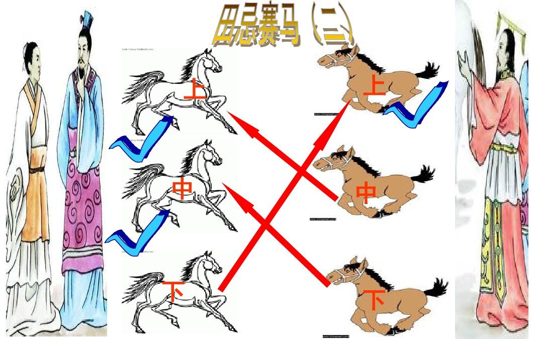 田忌賽馬的故事大家一定都聽說過,用自己的下等馬和對方的上等馬競賽,用上等馬和對方的中等馬競賽,用中等馬和對方的下等馬競賽,這樣就可以在三局的競賽中獲得勝利。