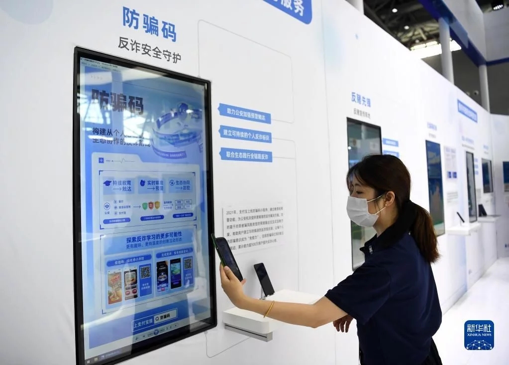 9月4日,一家參展企業(yè)代表在演示使用防騙碼! ‘斎,2022年國家網(wǎng)絡安全宣傳周網(wǎng)絡安全飽覽會在安徽省合肥市舉辦。