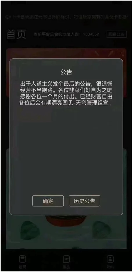 繼加密錢銀LUNA崩盤風波后,代幣市場也起波瀾! 6月6日,一張關(guān)于蒼穹元世界數(shù)字藏品渠道跑路的公告在網(wǎng)上撒播。