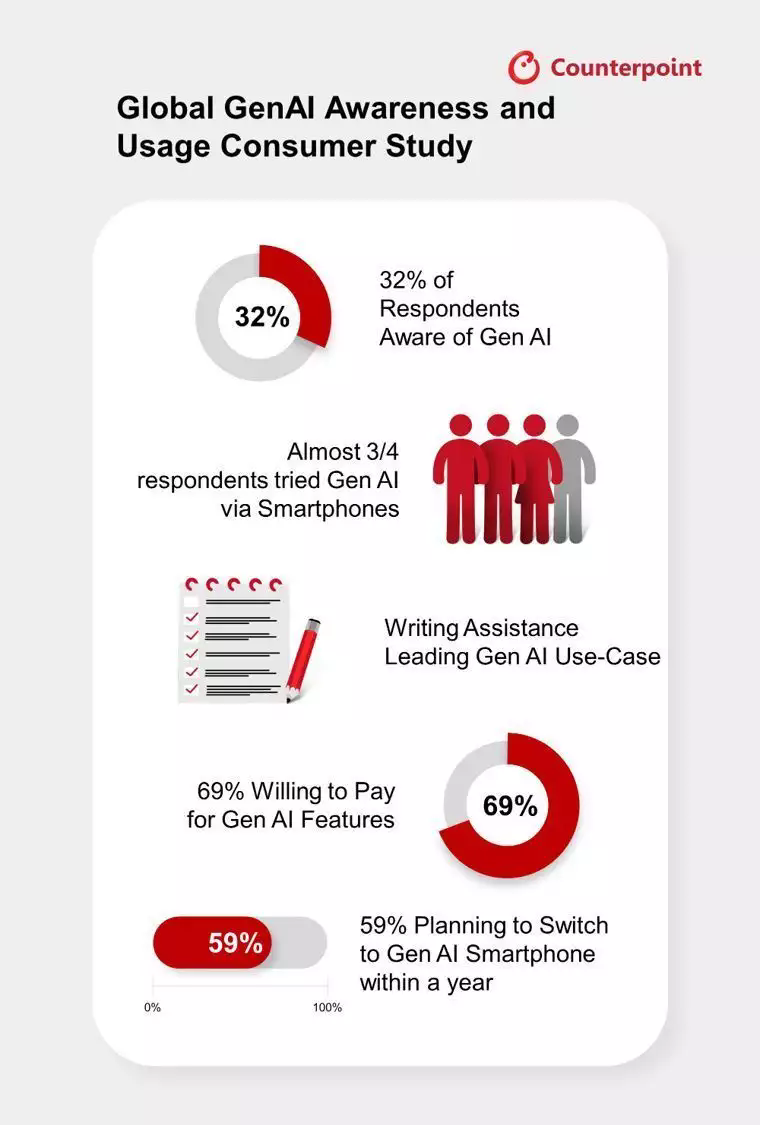 根據(jù) Counterpoint Research 的報告,生成式 AI 手機普及浪潮將至,以下是具體介紹: 消費者認(rèn)知與意愿