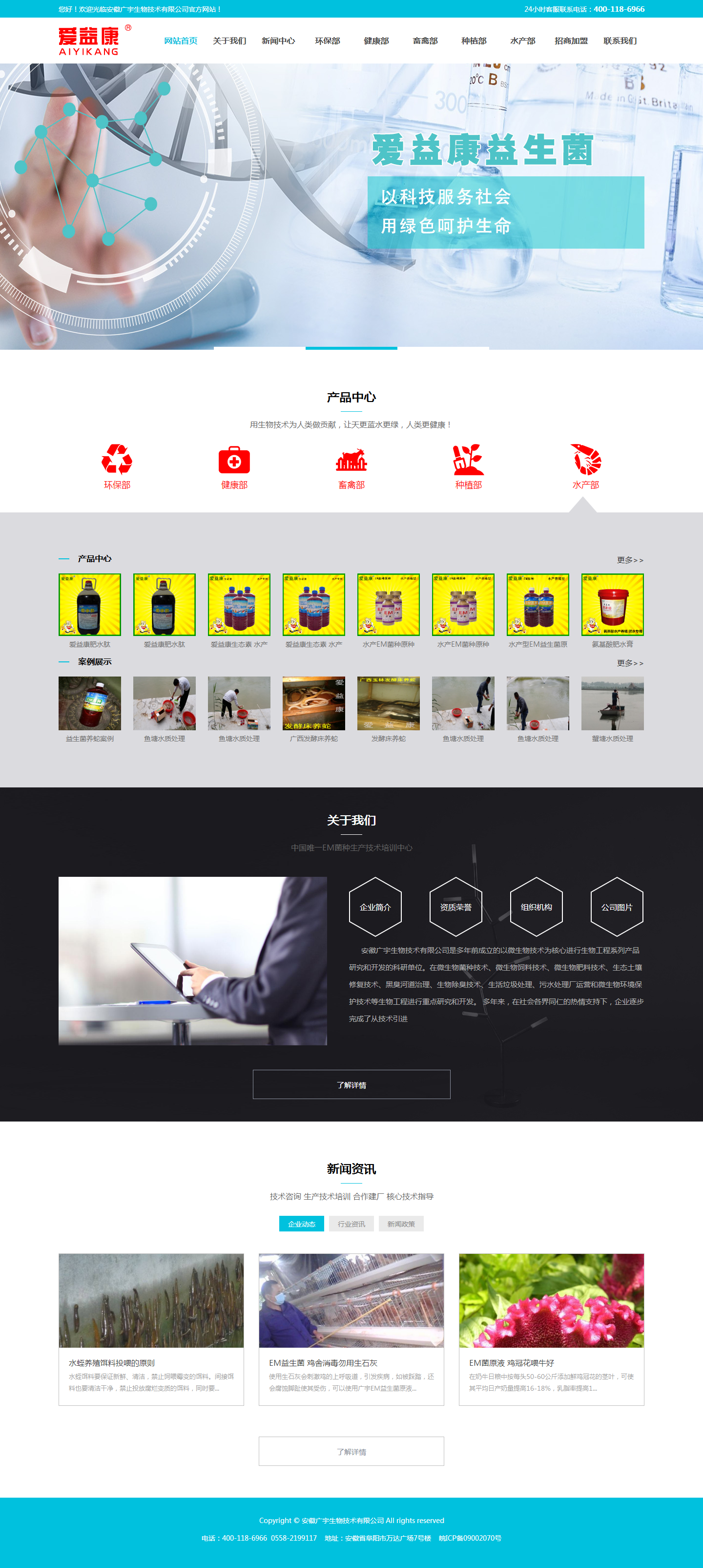 安徽廣宇生物技術(shù)有限公司是多年前成立的以微生物技術(shù)為核心進(jìn)行生物工程系列產(chǎn)品研究和開發(fā)的科研單位。在微生物菌種技術(shù)、微生物飼料技術(shù)、微生物肥料技術(shù)、生態(tài)土壤修復(fù)技術(shù)、黑臭河道治理、生物除臭技術(shù)、生活垃圾處理、污水處理廠運(yùn)營(yíng)和微生物環(huán)境保護(hù)技術(shù)等生物工程進(jìn)行重點(diǎn)研究和開發(fā)。